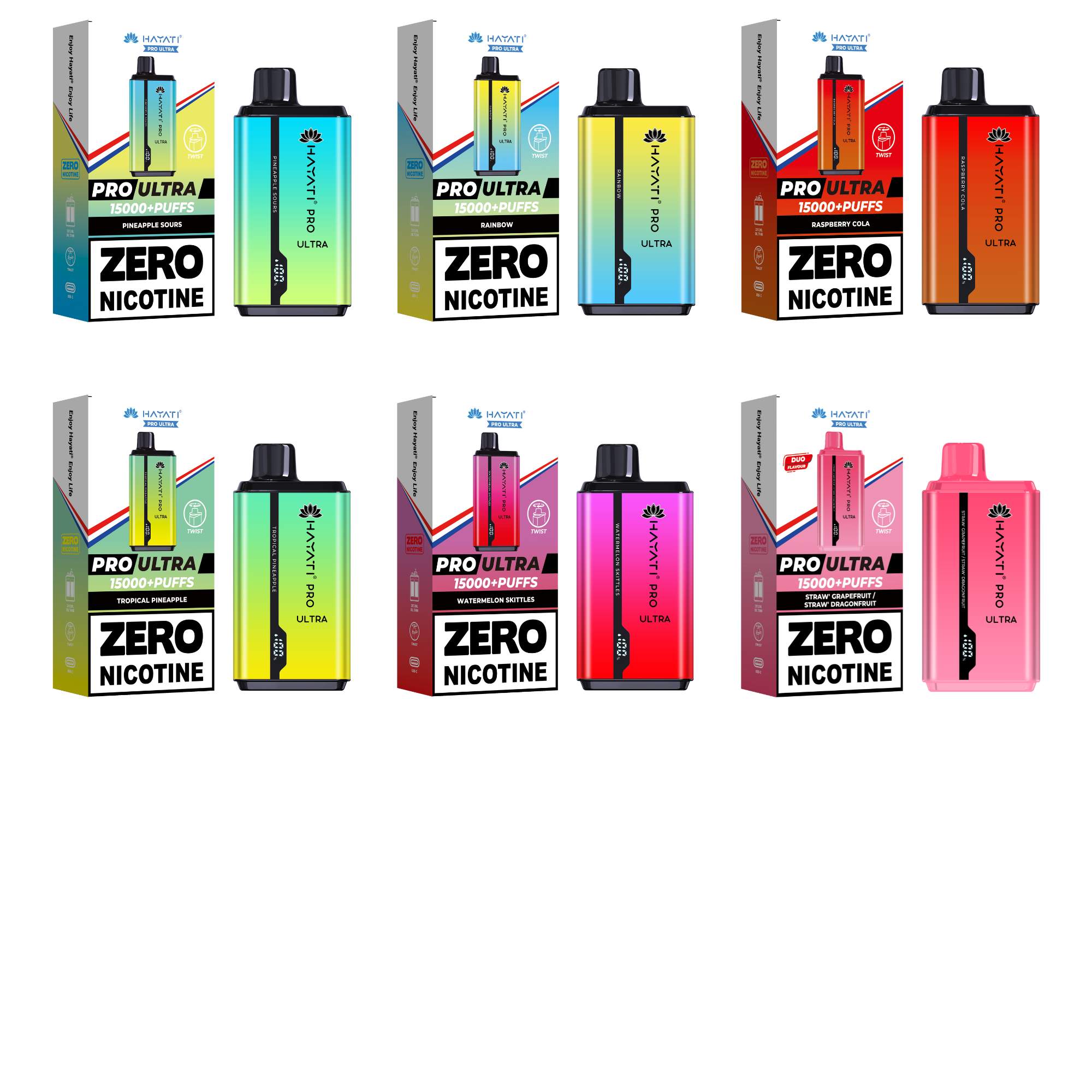 The Hayati Pro Ultra 15K is a high-end disposable device offering zero nicotine, packed with flavor, technology, and sleek design. A perfect choice for customers looking to enjoy vaping without the effects of nicotine – without sacrificing quality.