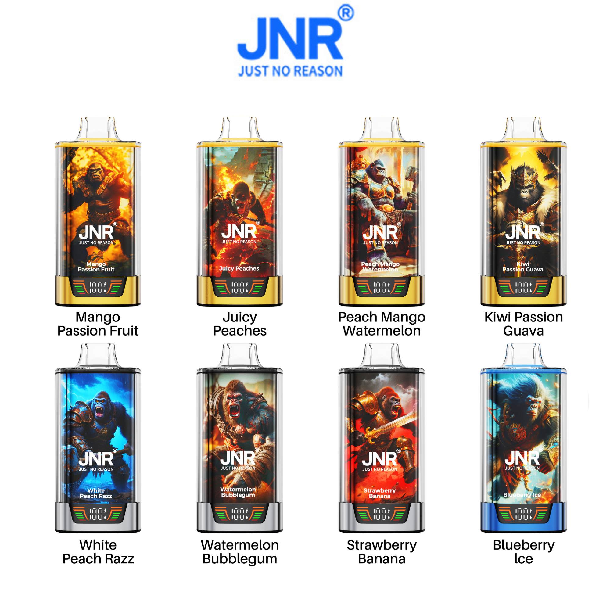 The JNR – RageGorilla 55K is sold exclusively in packs (VE) of 10 units per flavor.