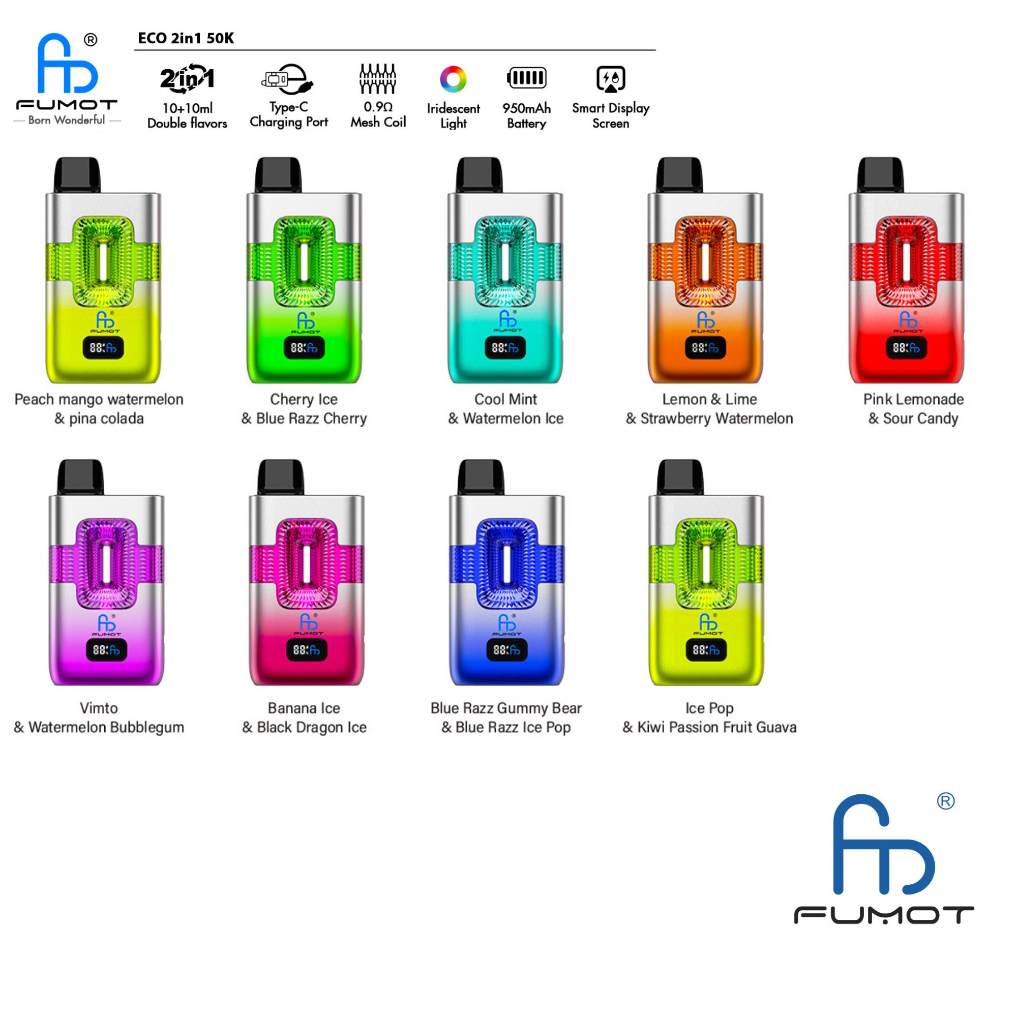 ✅ Fumot ECO 2in1 50K – Einweg Vape – 2 % Nikotin – Großhandel (Pack of 10)