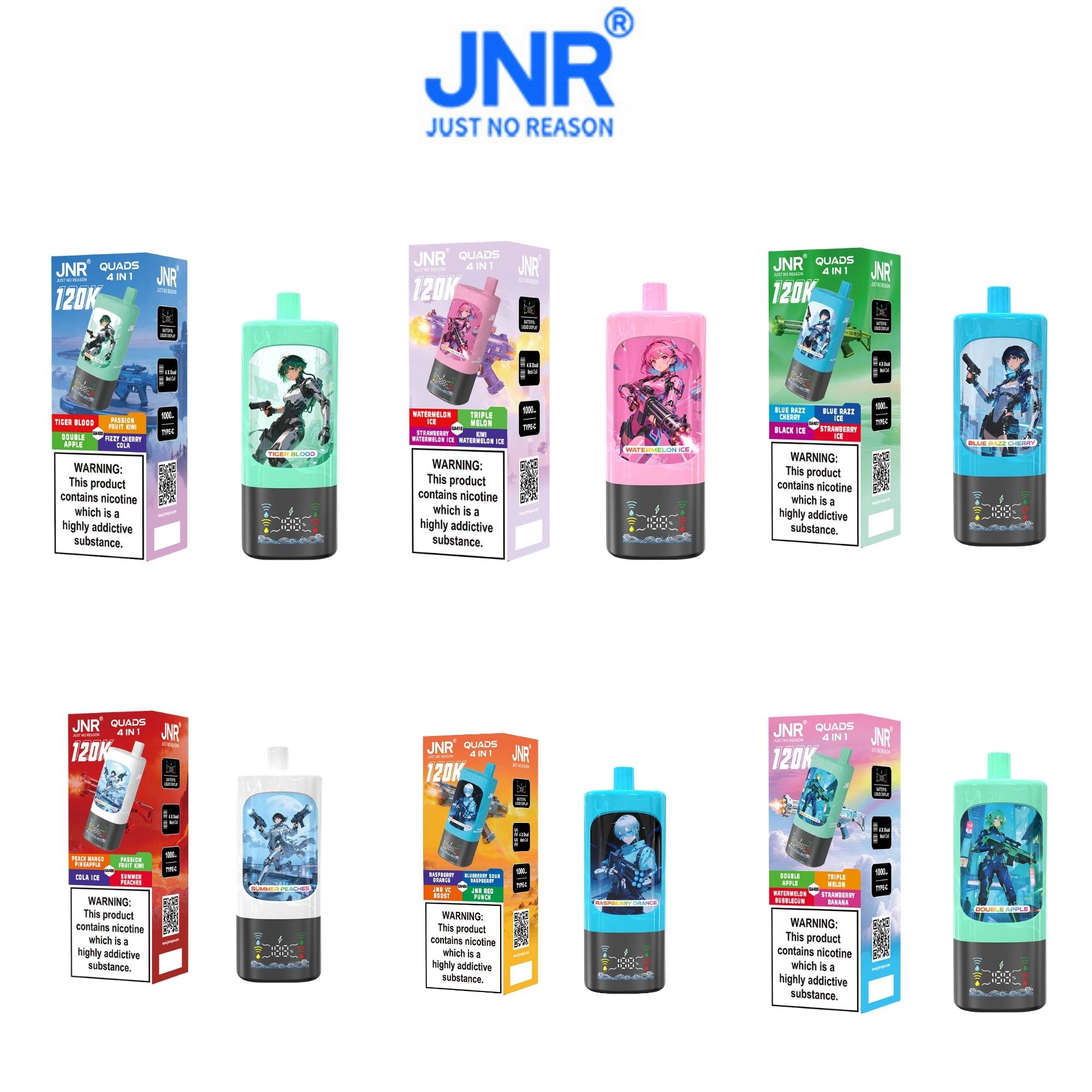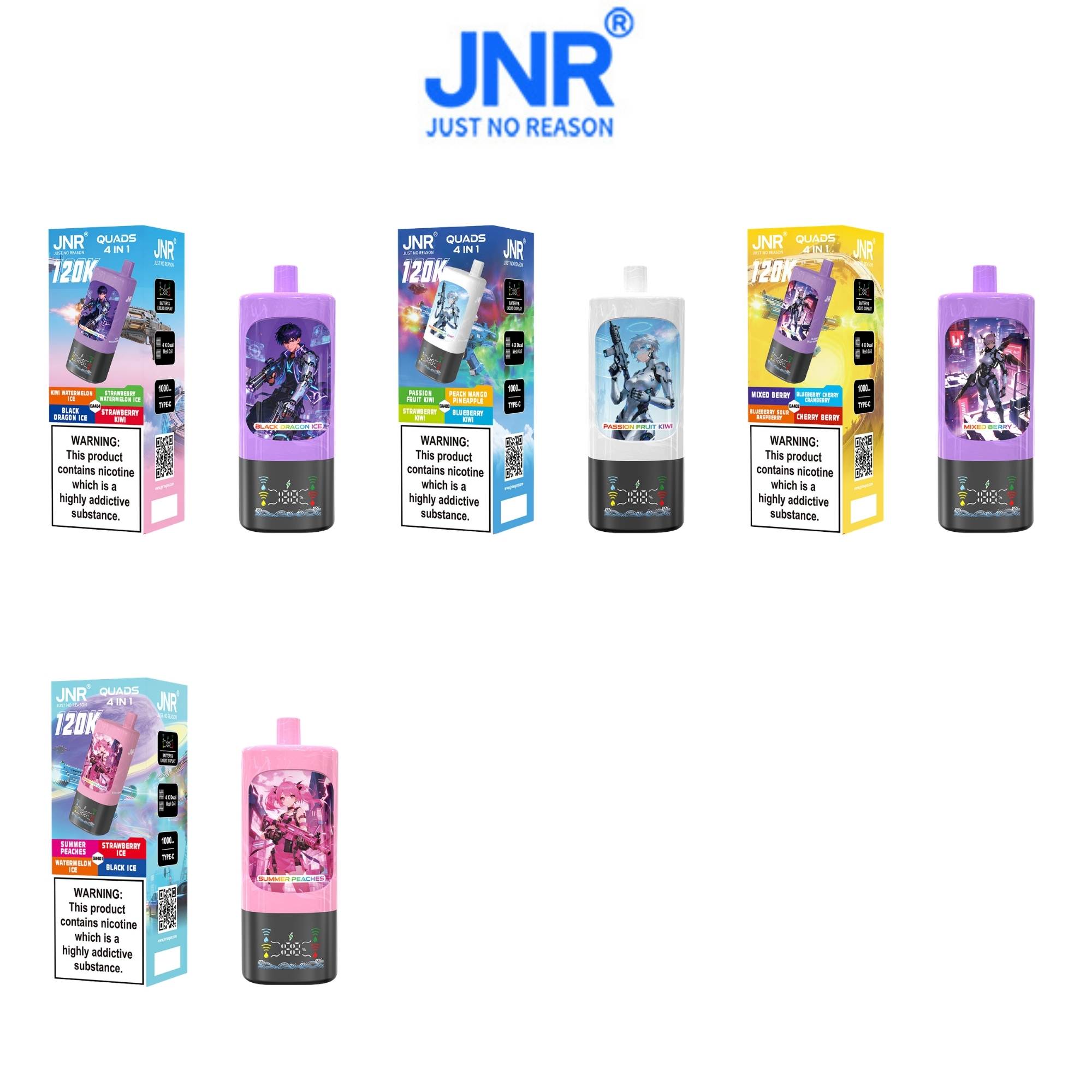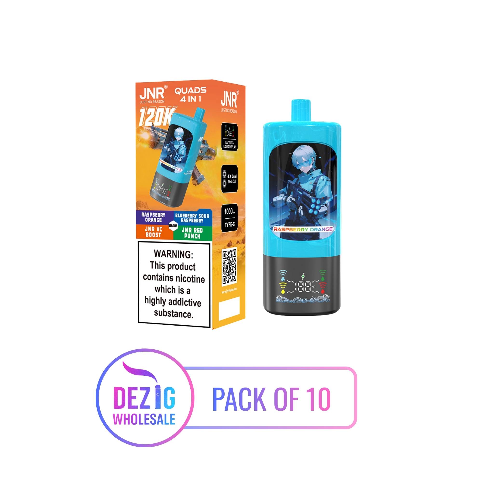 JNR Quads 4in1 120K – 4 Geschmäcker – 2 % Nikotin – Großhandel (Pack of 10)
